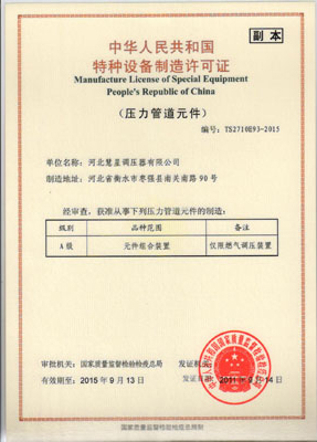 主導(dǎo)產(chǎn)品切斷式煤氣調(diào)壓器通過河北省經(jīng)濟(jì)委員會(huì)、省標(biāo)準(zhǔn)計(jì)量局認(rèn)可,獲得采用國際準(zhǔn)認(rèn)可證書